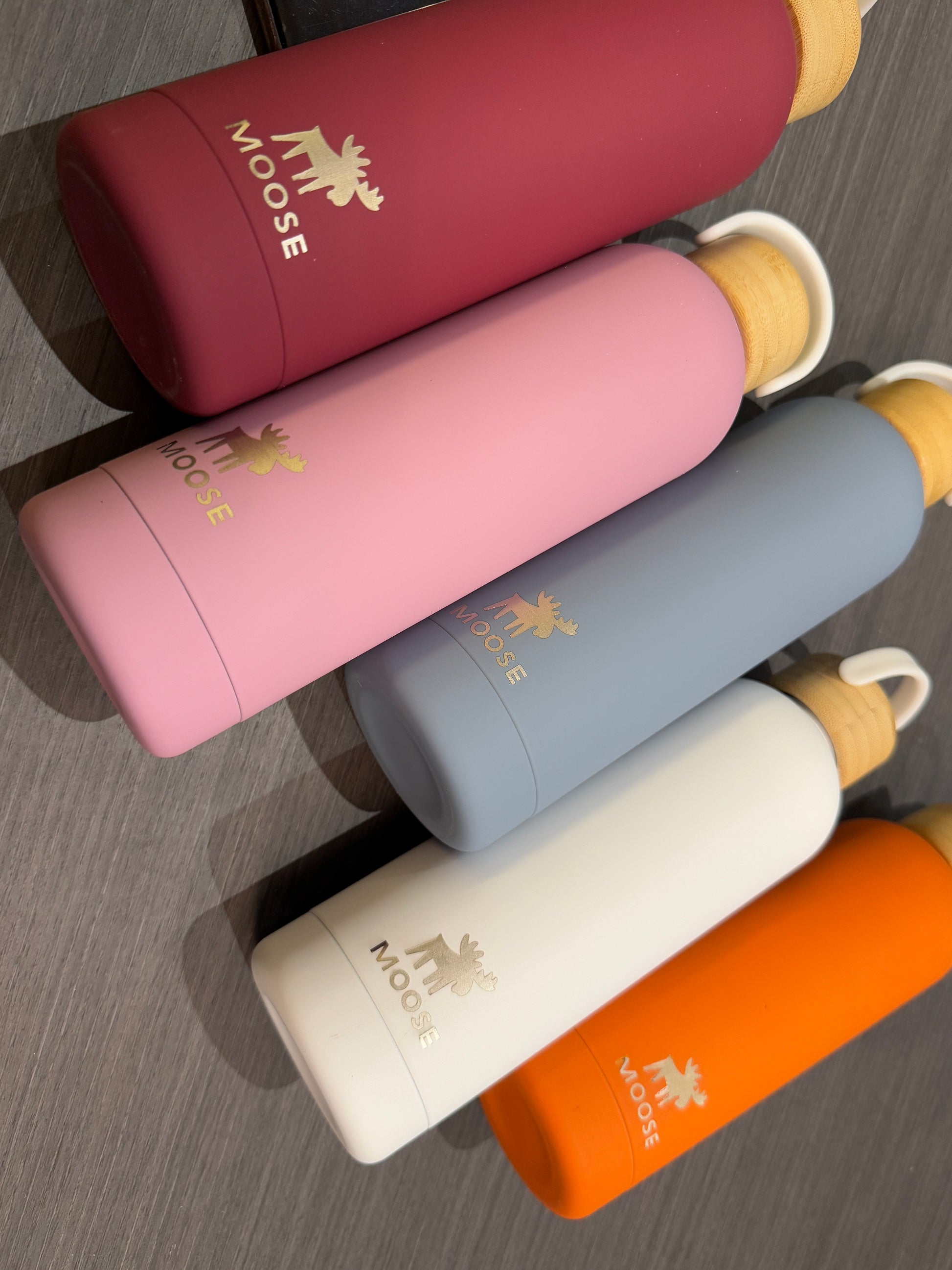 Elegant insulated bottle with bamboo cap and matte finish. Keeps drinks hot or cold with eco-friendly design.